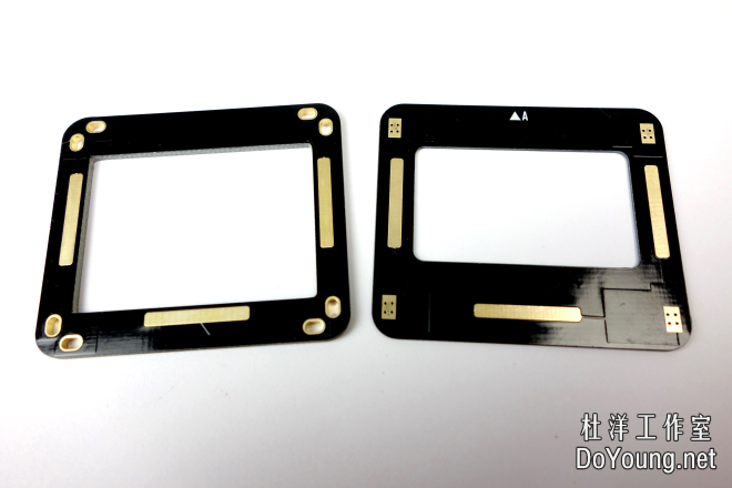 - - 把OLED屏背面朝上,排线左右的开孔对准PCB上的镀金小圆点